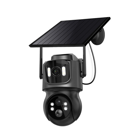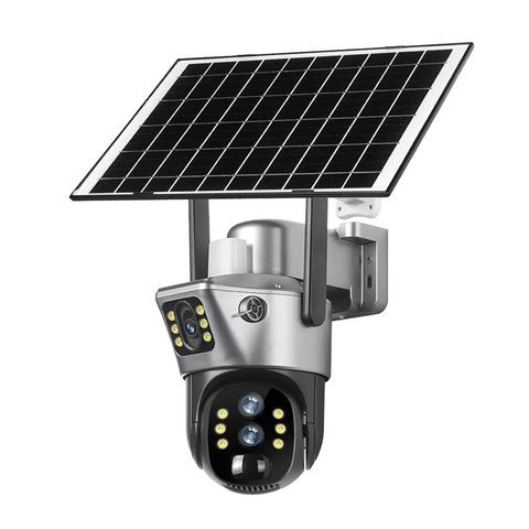 V380 yeni siyah gümüş çift Lens 4G güneş kamera 4MP akülü kablosuz Dome ağ güvenlik CCTV 4G güneş kamera