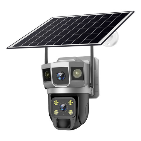 Yeni 4mp 4mp açık 3lens PTZ hareket algılama otomatik izleme Wifi kamera güneş düşük güç Cctv güvenlik sistemi 4g kamera