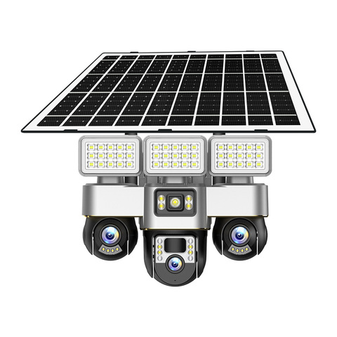 3mp nero impermeabile da esterno solare luce a Led con 4g fotocamera a tre lenti 300w lampada integrata telecamera solare Wifi